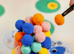 用繽紛的毛茸茸小球,搭出一座不會倒塌的反重力高塔!